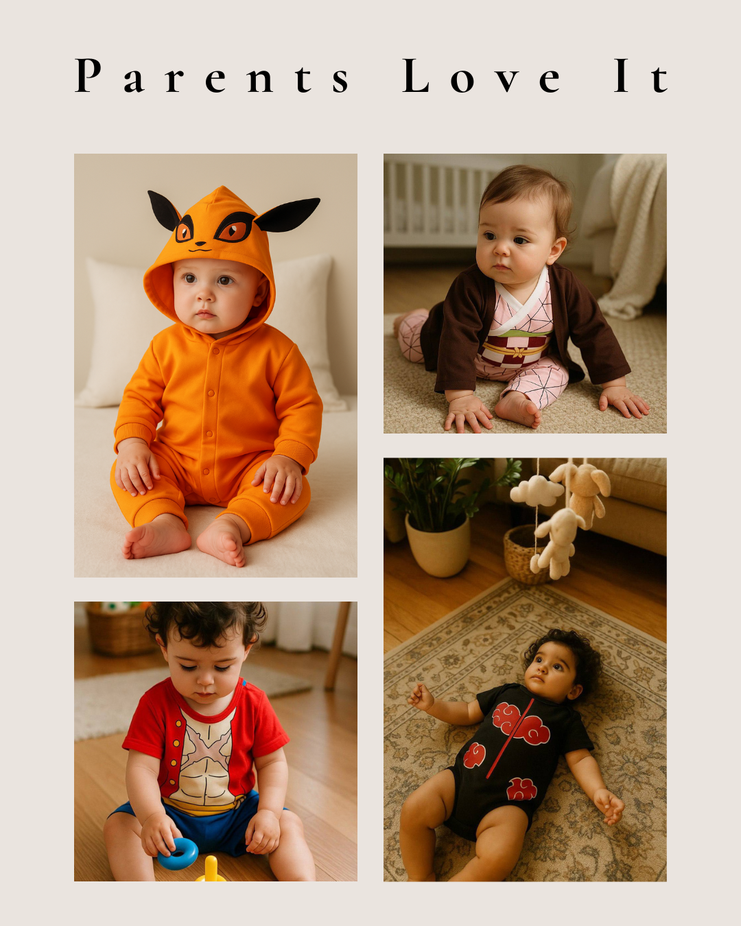 We design our costumes with anime fans in mind — every detail is inspired by the characters you love, adapted for baby comfort.