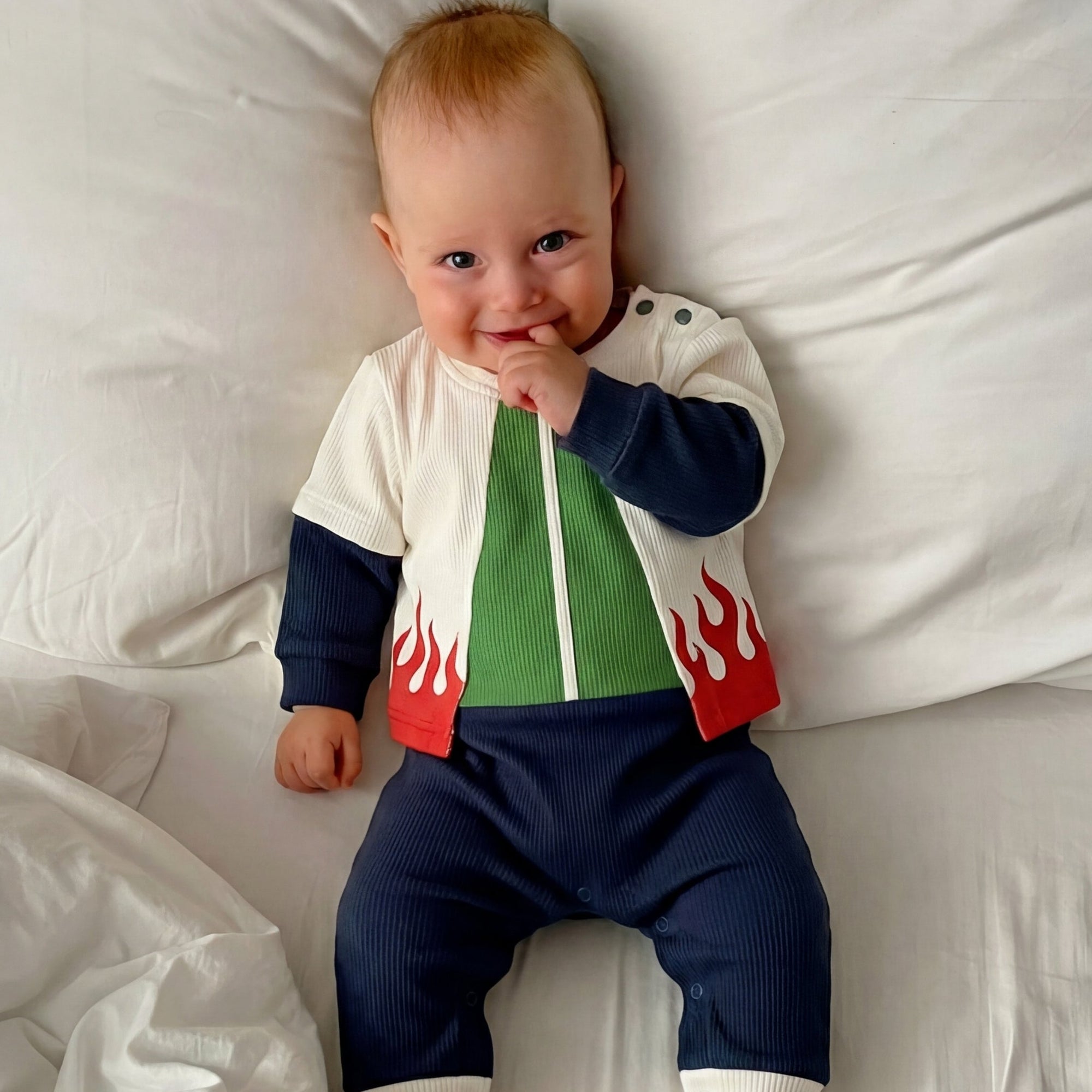 Dress your little hero in a Minato-inspired romper featuring the iconic flame-hemmed design of the legendary Fourth Hokage. Crafted from ultra-soft, breathable cotton with a gentle stretch, it keeps your baby cozy whether they’re crawling, playing, or napping. The vibrant, fade-resistant print captures Minato’s unmistakable style, while durable stitching ensures it stays perfect wash after wash.