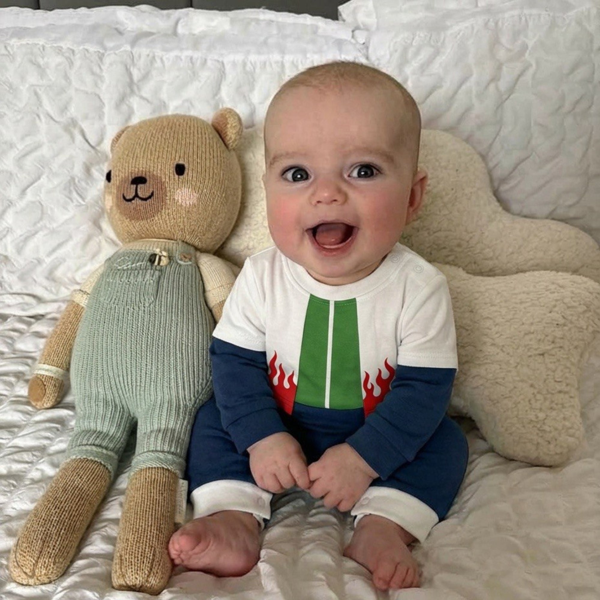 Our sizing is based on standard age measurements and tested on real babies. The fabric keeps its shape and won’t shrink over time.