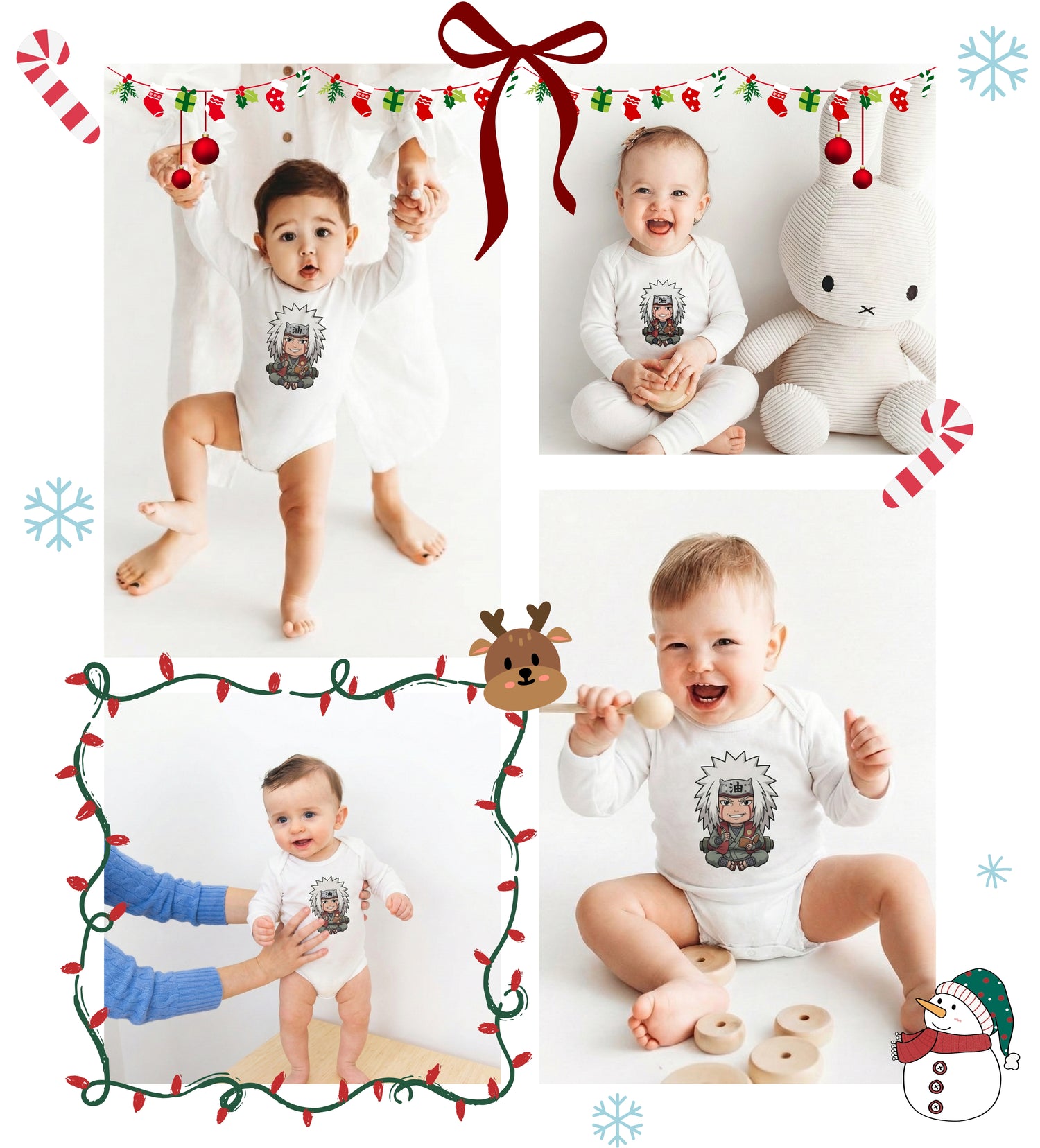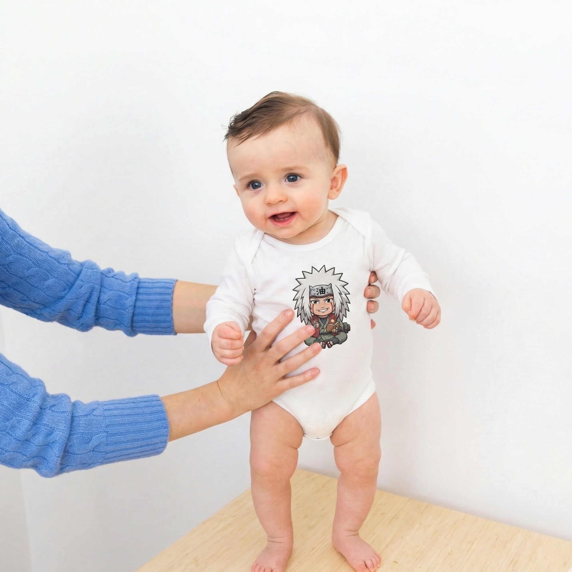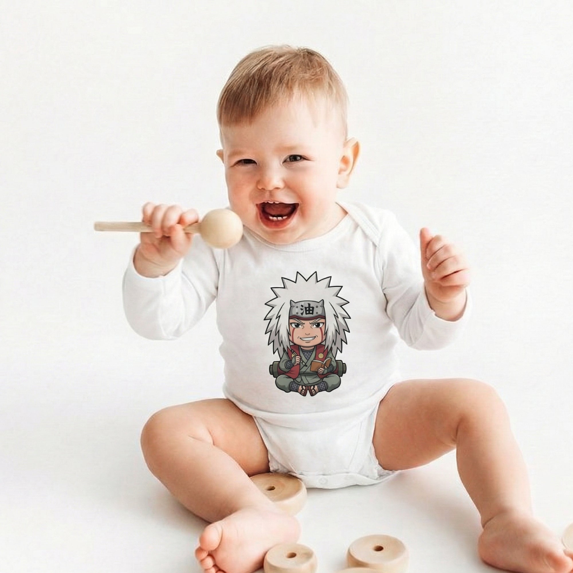 Dress your little shinobi in this adorable white romper inspired by the legendary Toad Sage, Jiraiya. Made from ultra-soft, skin-friendly cotton with breathable stretch, it keeps your baby comfy through tummy time, naps, and everyday mini missions. The vibrant, fade-resistant print features a chibi Jiraiya with iconic sage vibes and toad-themed charm, while durable stitching and tag-free seams make sure the romper stays cozy and cute wash after wash.