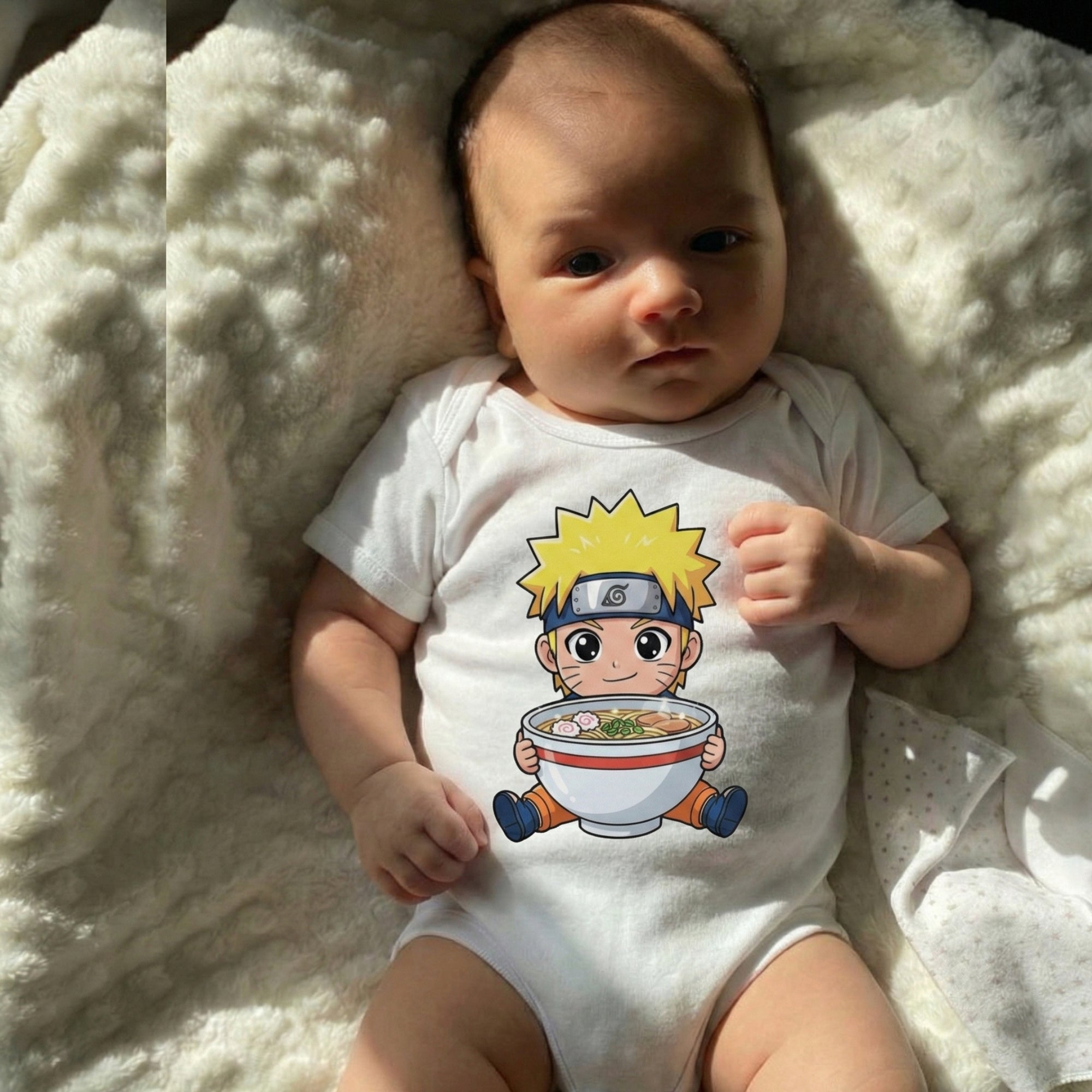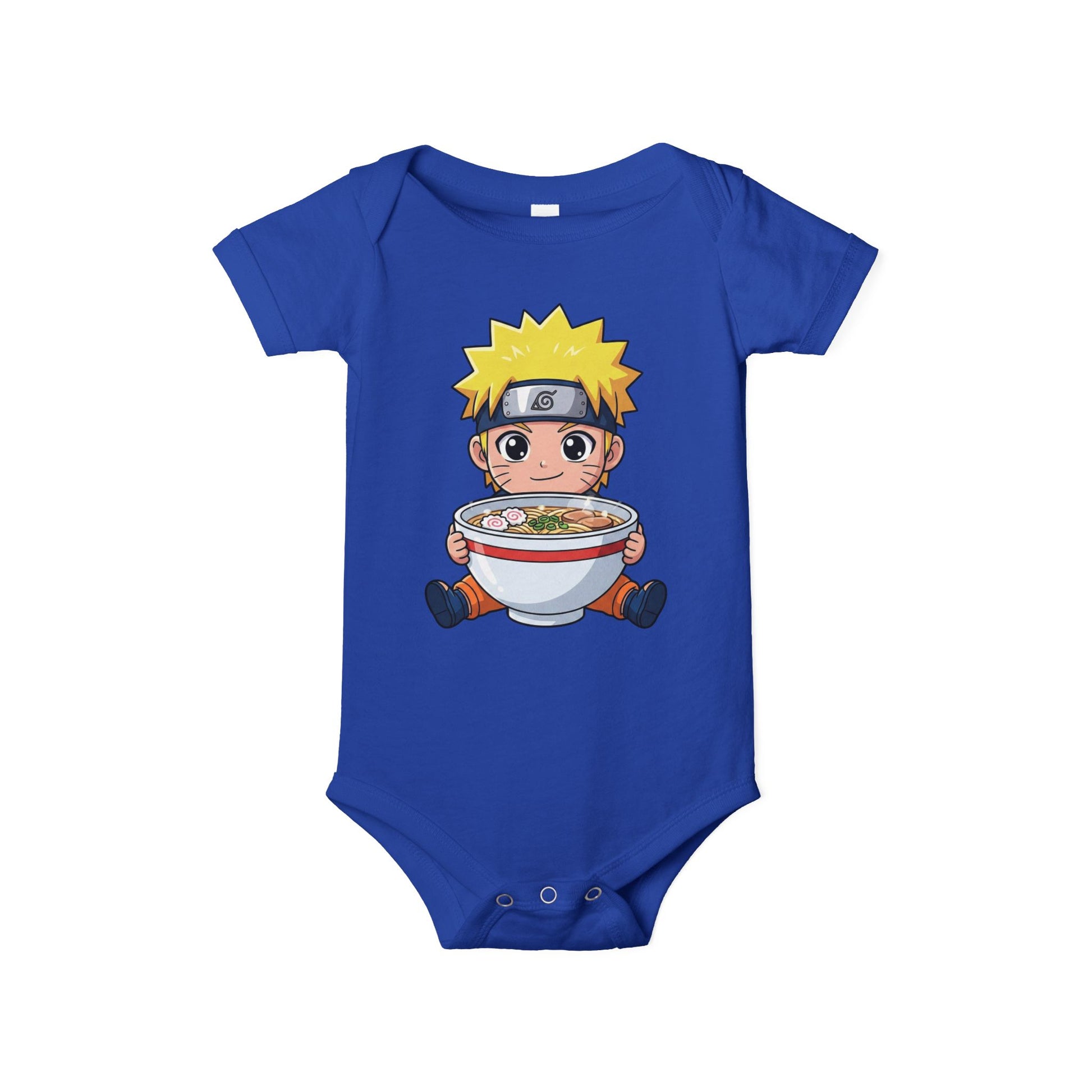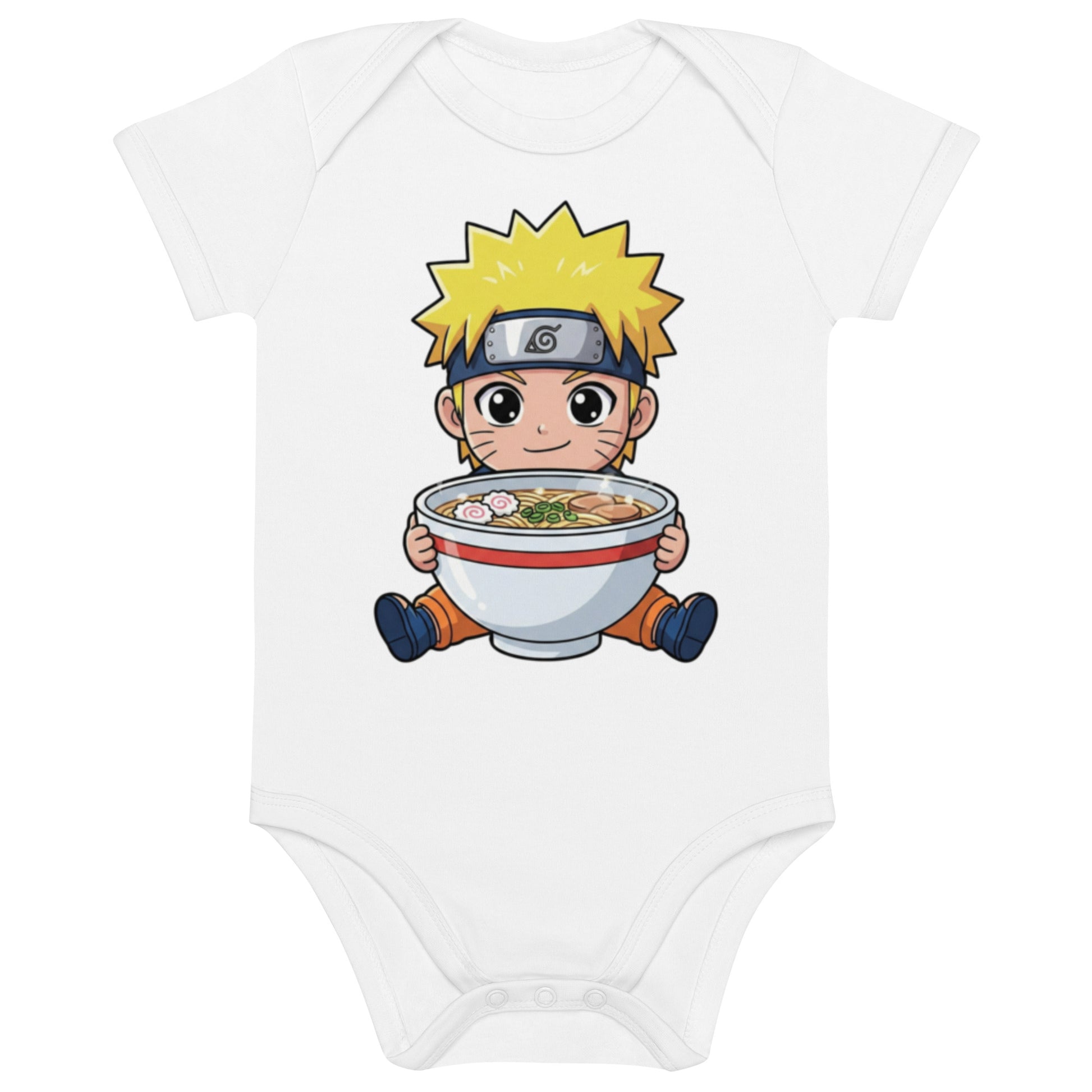 Dress your little one in this adorable white romper inspired by everyone’s favorite ramen-loving ninja. Made from ultra-soft, skin-friendly cotton with breathable stretch, it keeps your baby comfy through wiggles, naps, and everyday adventures. The vibrant, fade-resistant print shows a chibi ninja hugging a giant bowl of ramen, while durable stitching and tag-free seams ensure cozy comfort wash after wash.