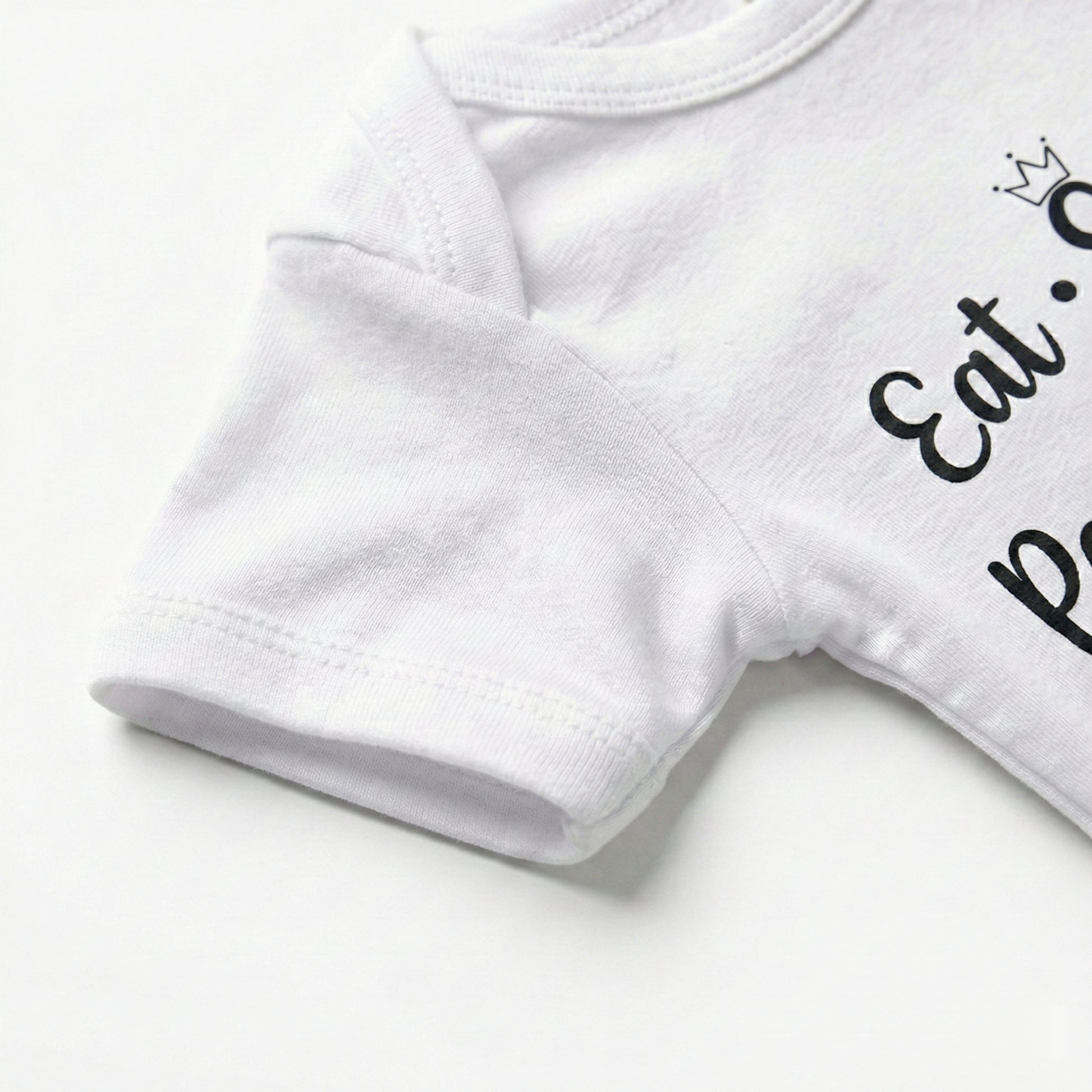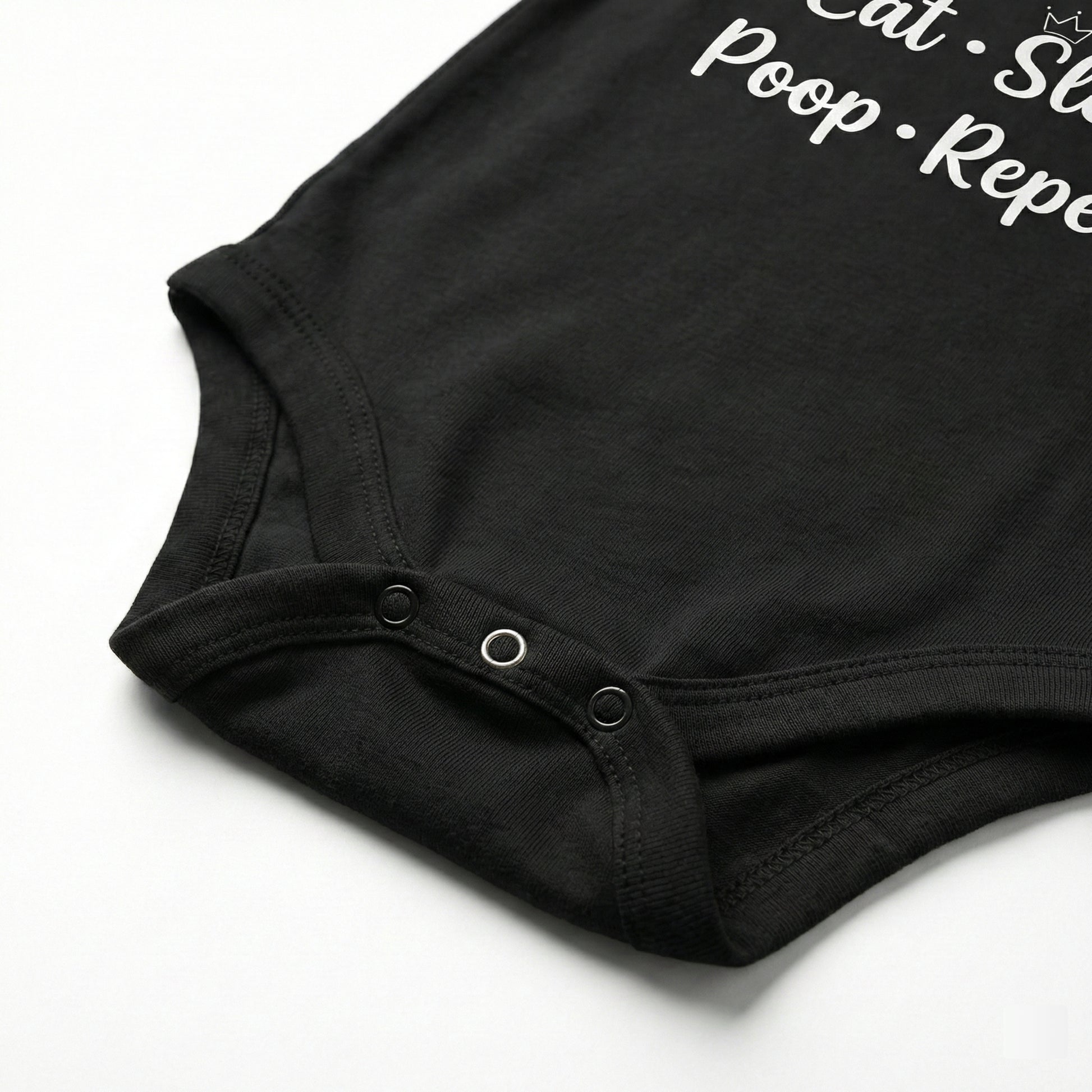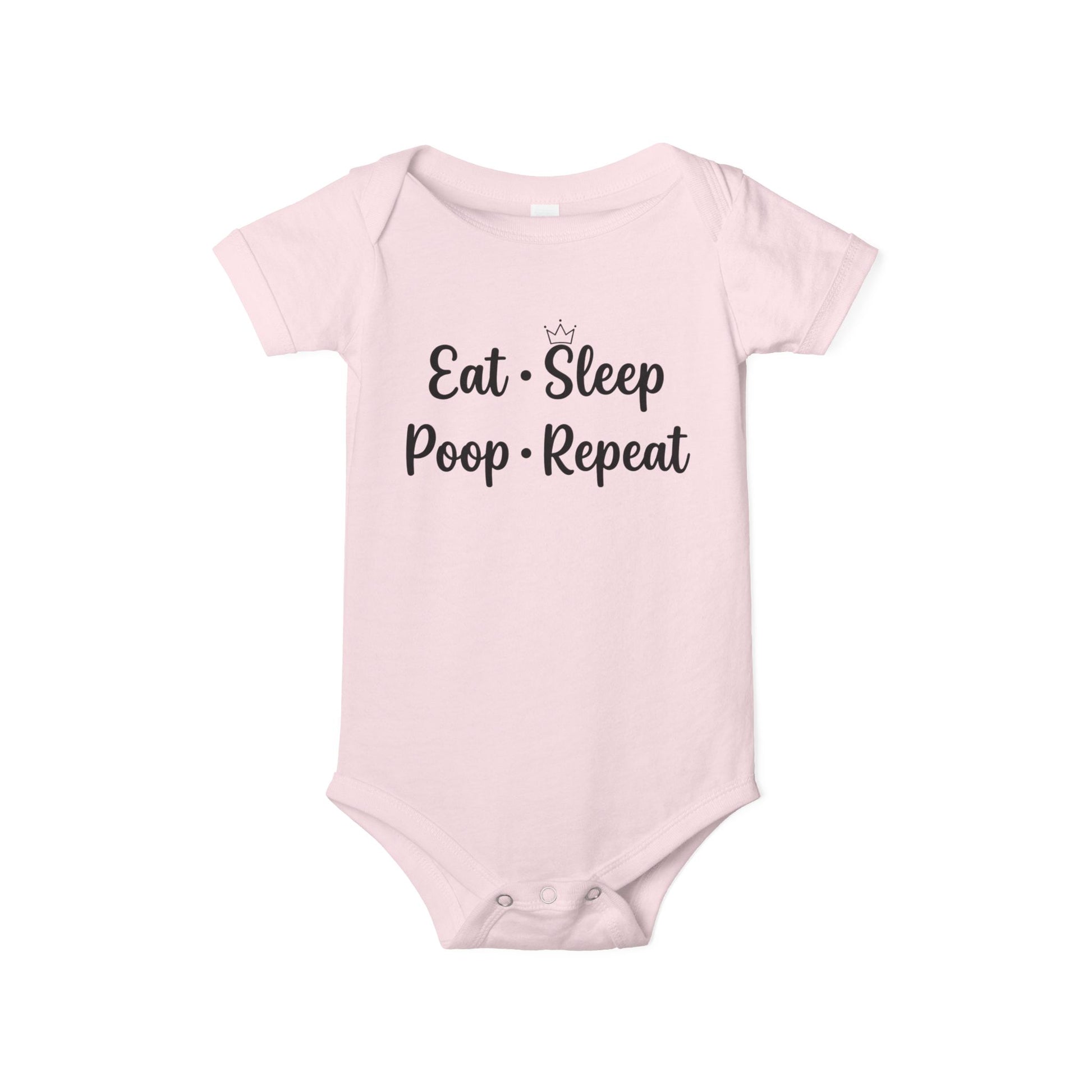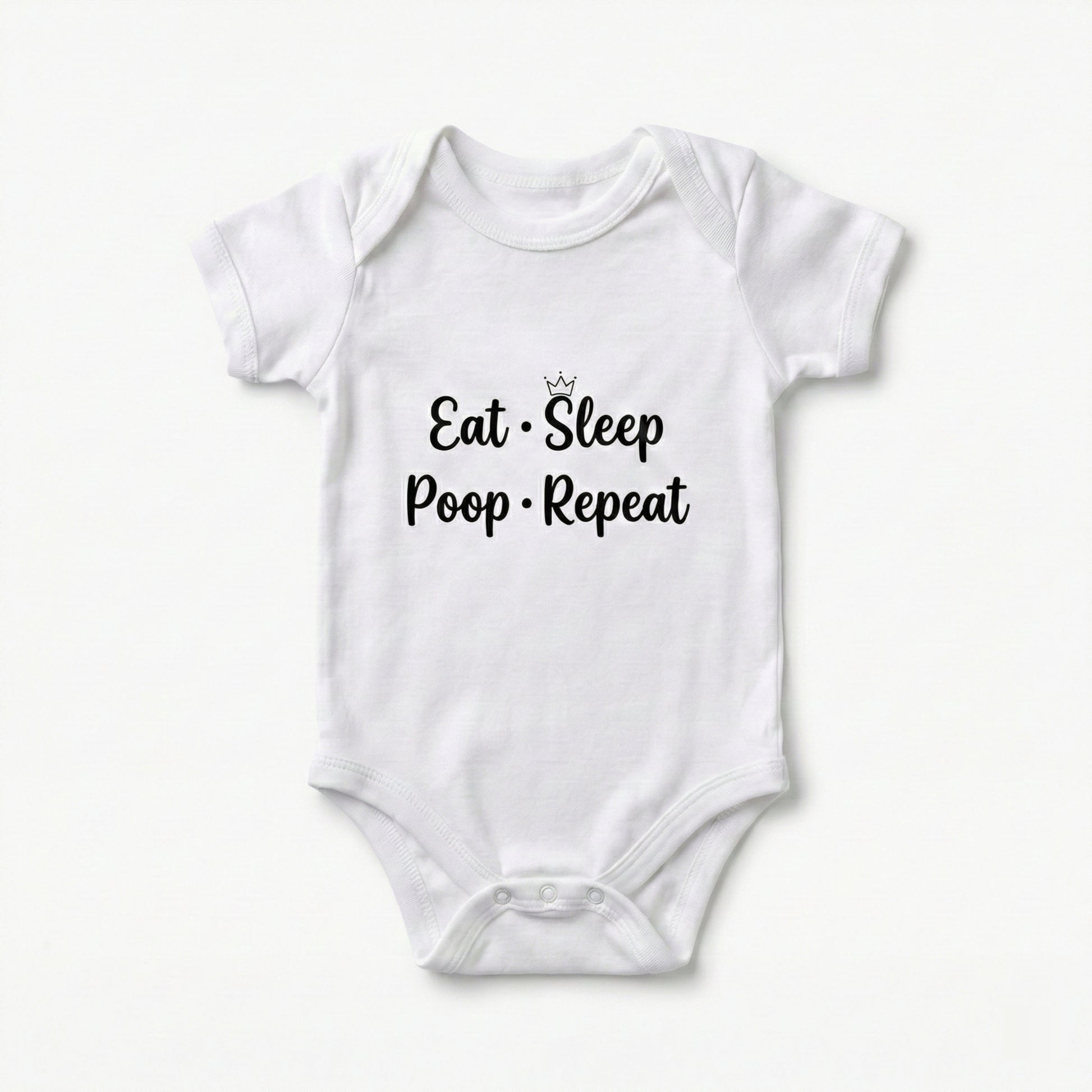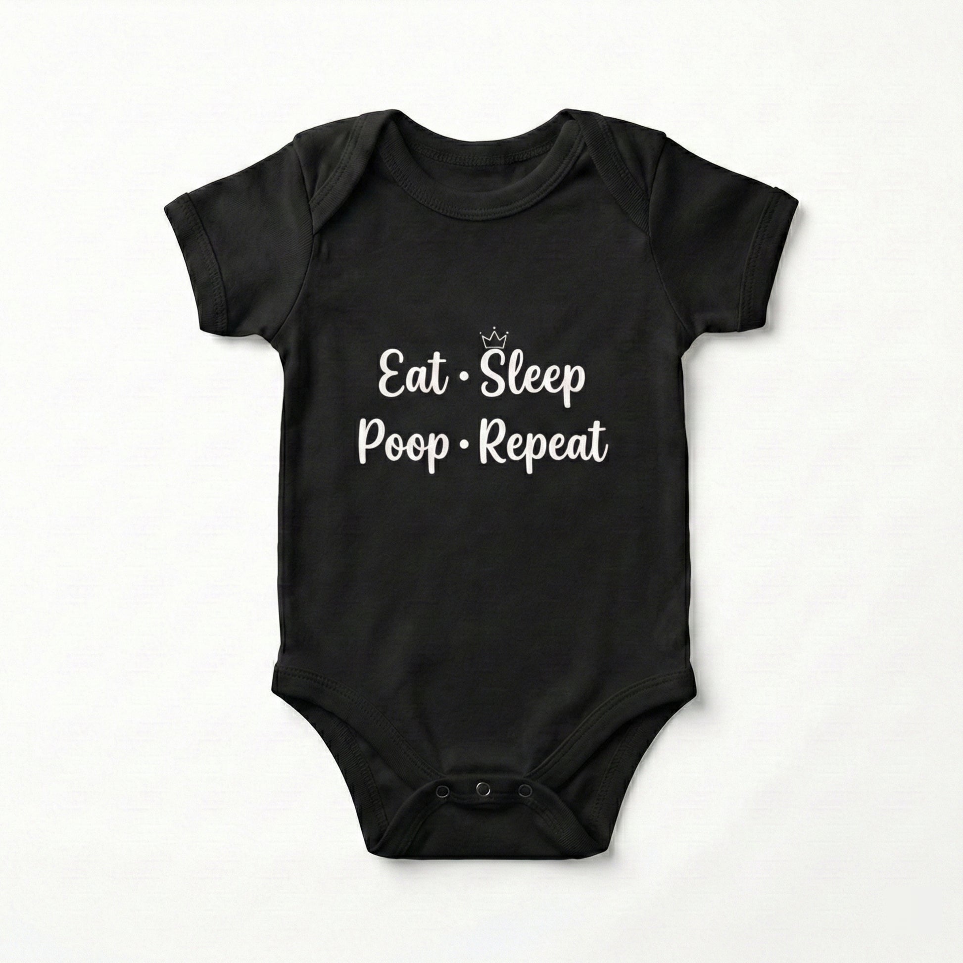 Because let’s be honest — this is the real baby schedule! This funny “Eat • Sleep • Poop • Repeat” bodysuit is perfect for your little routine expert who keeps the whole house on a cycle of snacks, naps, and diaper duty. Made from ultra-soft, breathable cotton with a comfy stretch, it keeps your baby cozy through feeding time, cuddle breaks, and those “fresh diaper, please!” moments. The clean black print pops on bright white fabric, and the easy snap closures make diaper changes quick and stress-free.