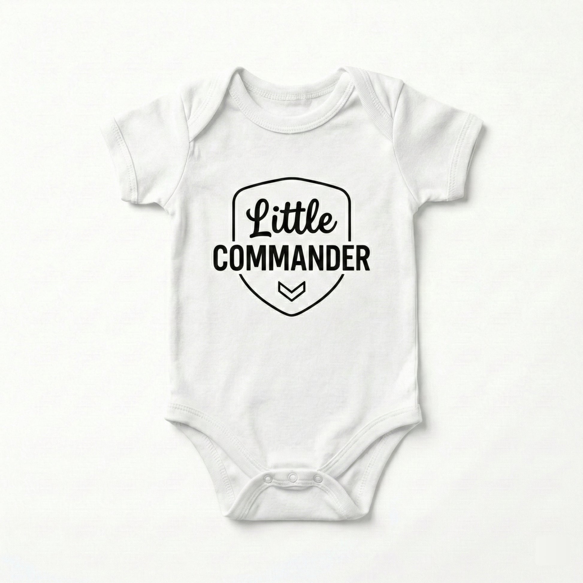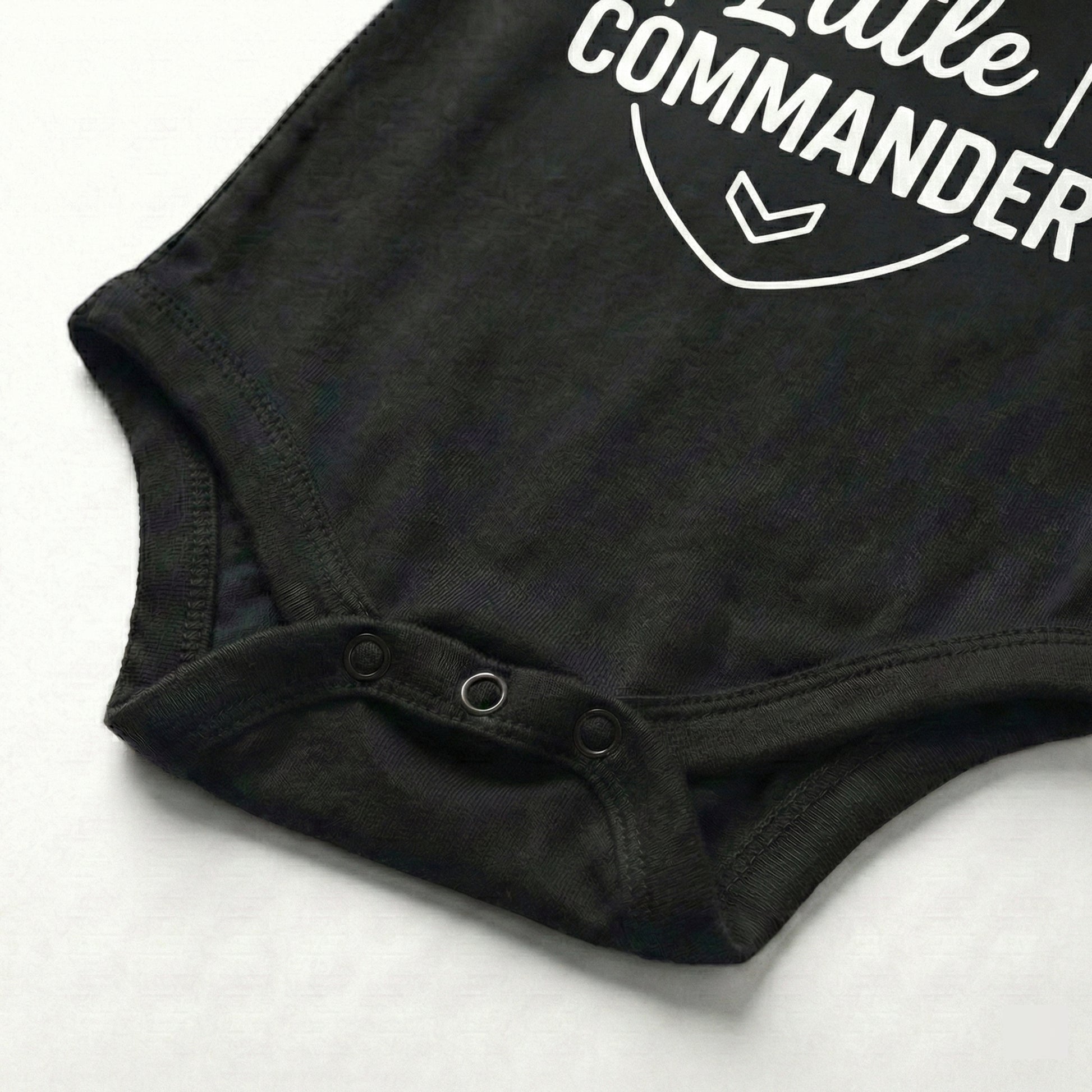 All salute the tiniest boss in the house! This bold “Little Commander” bodysuit is perfect for the baby who runs the daily schedule — from snack time to nap time — with serious leader energy. Made from ultra-soft, breathable cotton with a comfy stretch, it keeps your little commander cozy through cuddle missions, playtime drills, and those important “house rules” meetings. The crisp black print stands out on bright white fabric, and the easy snap closures make diaper changes fast and stress-free.
