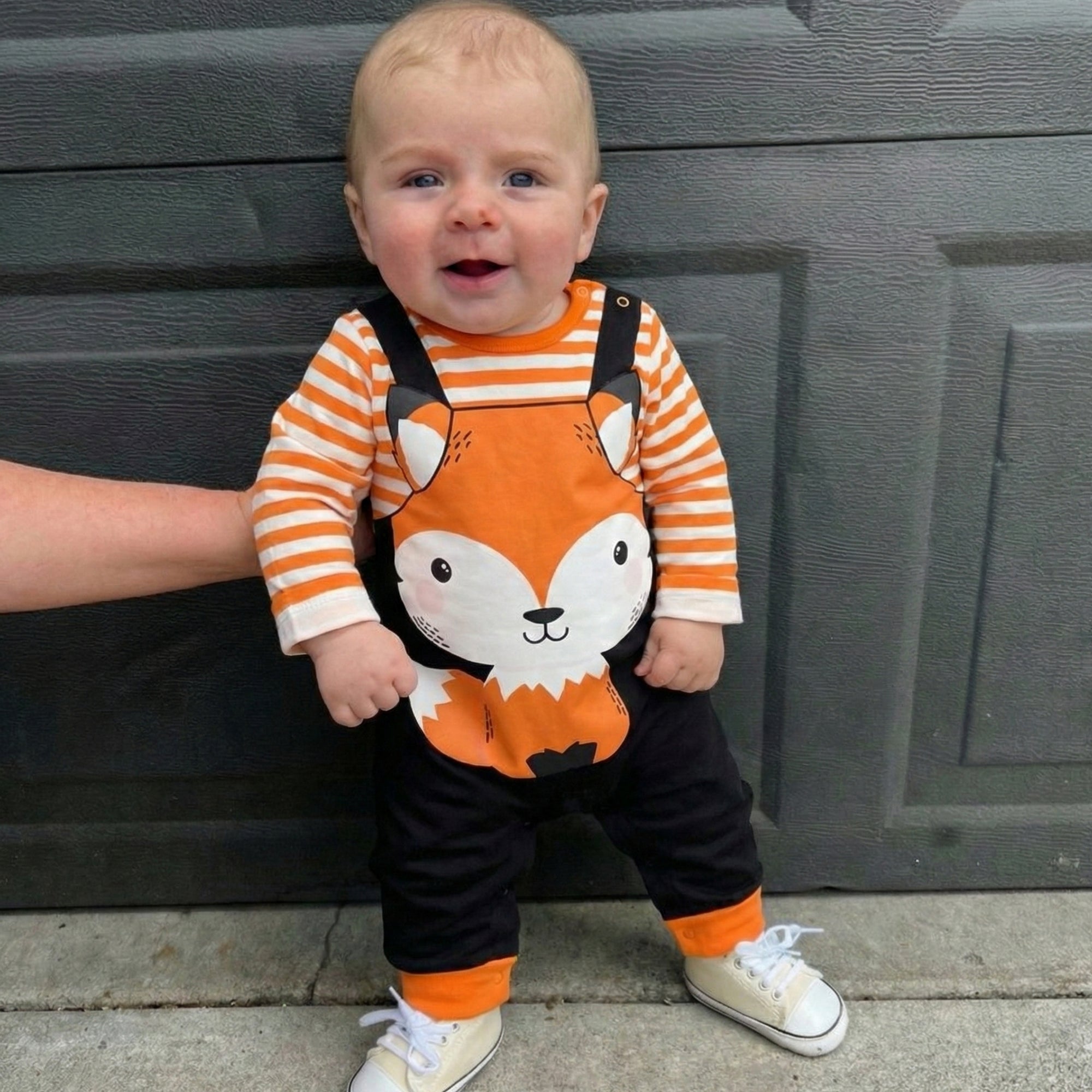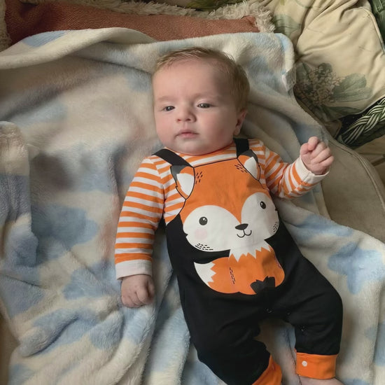 Transform everyday playtime into a cozy forest story with this fox-inspired romper perfect for keeping your little cutie comfy, cozy, and ready for cuddles, even on cooler days. With bright orange stripes, an adorable fox face, and a fun overall-style look, this outfit is guaranteed to make your baby the star of every photo.