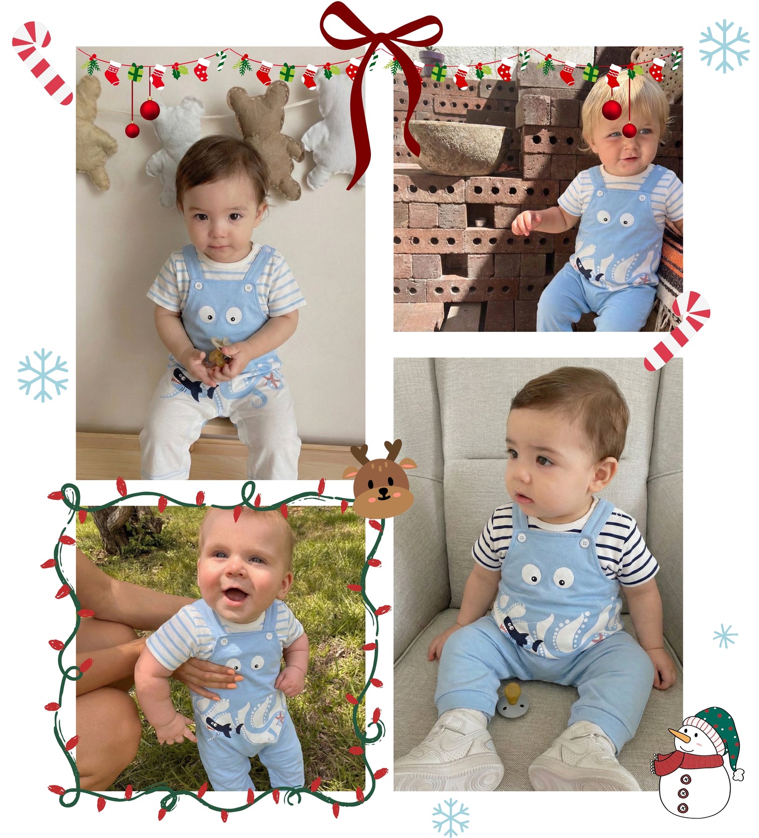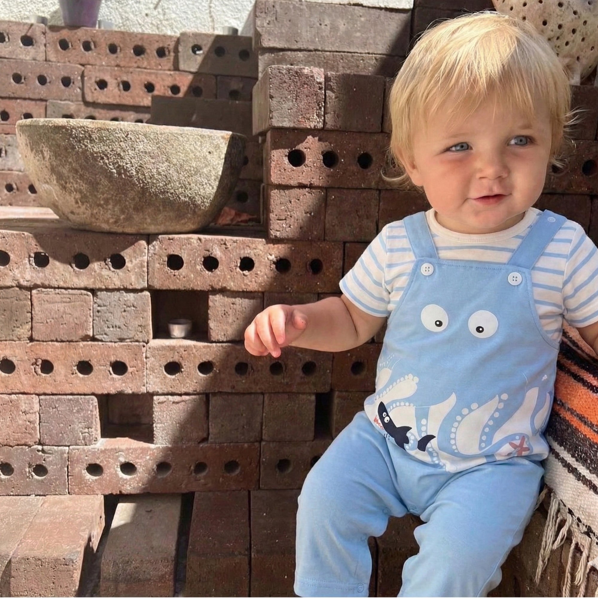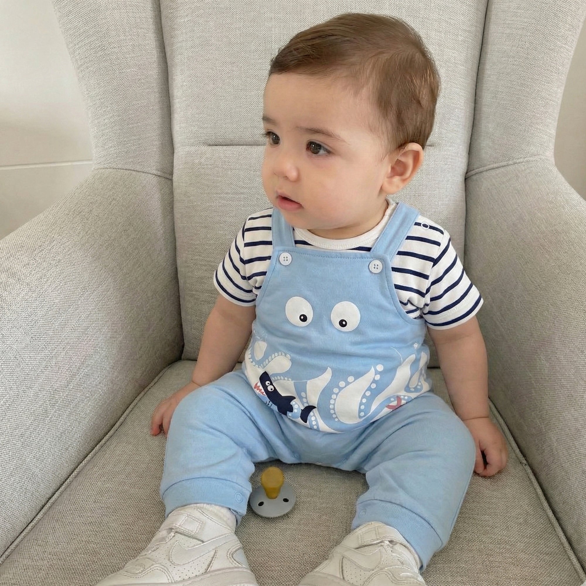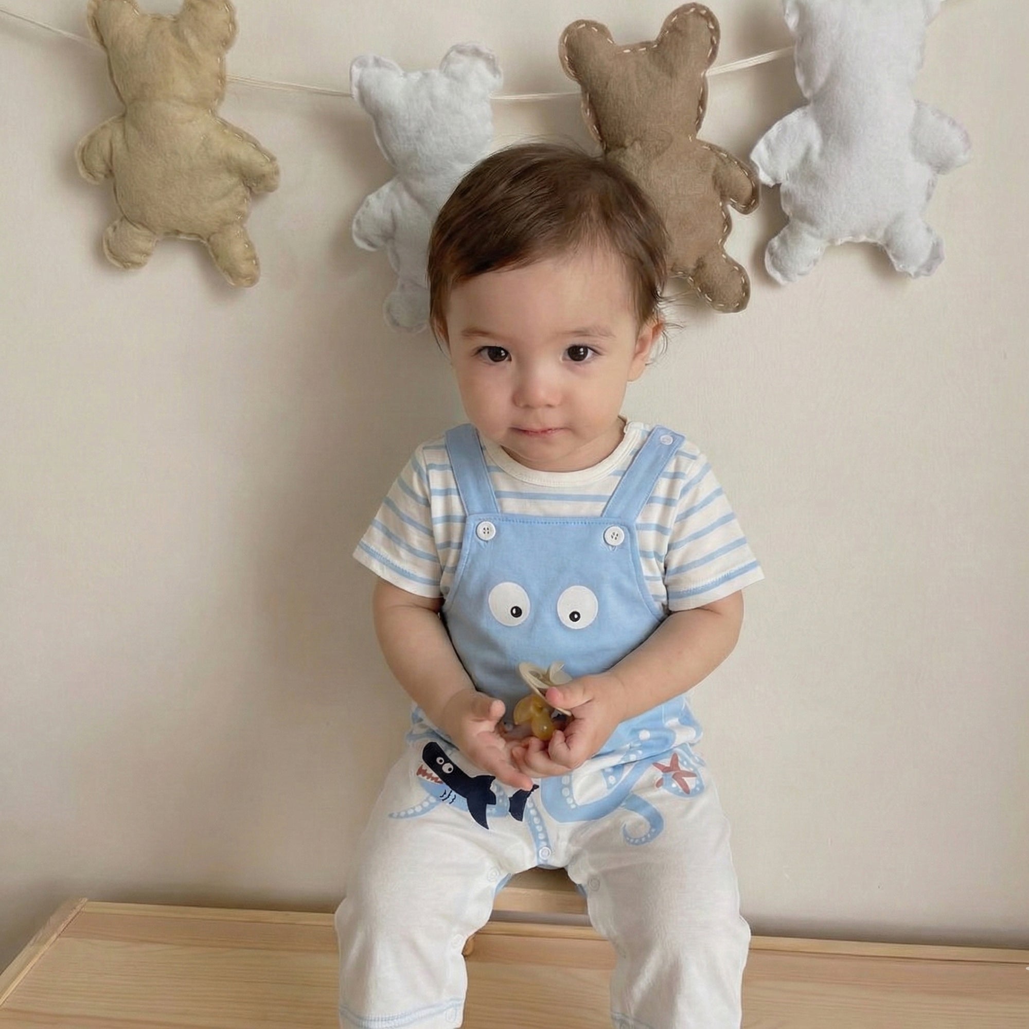 Make every day feel like a little undersea adventure with this adorable octopus-overalls romper — comfy, lightweight, and full of playful sea vibes. The cute octopus design and soft blue tones bring instant smiles, while the easy, baby-friendly fit keeps your little swimmer cozy from tummy time to nap time.