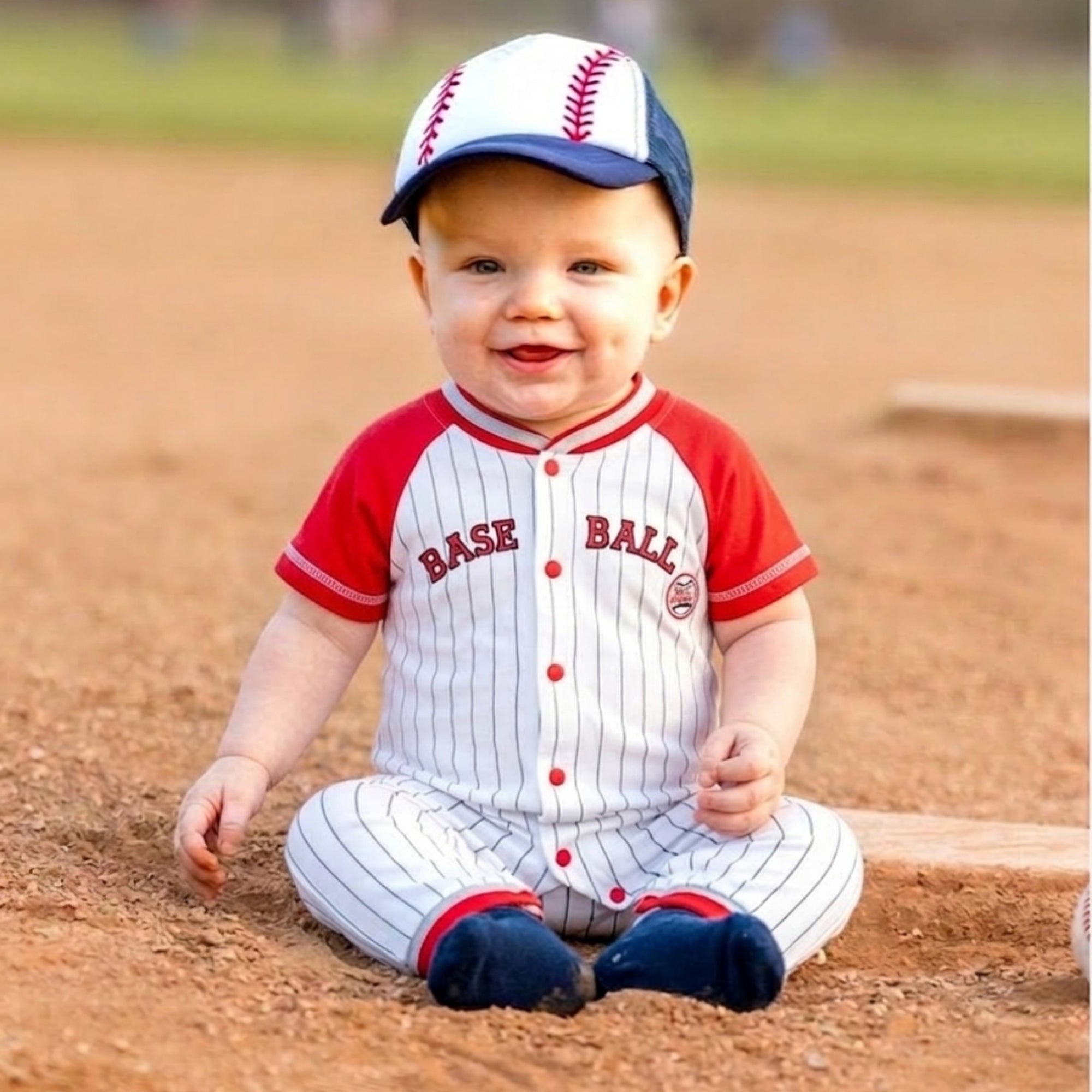 Perfect for 🎉 birthdays, 📸 adorable photoshoots, 🏟️ game days, 🧸 everyday play, or 🎁 as a standout baby shower gift — this romper blends comfort, sporty charm, and home-run style for every tiny champion!