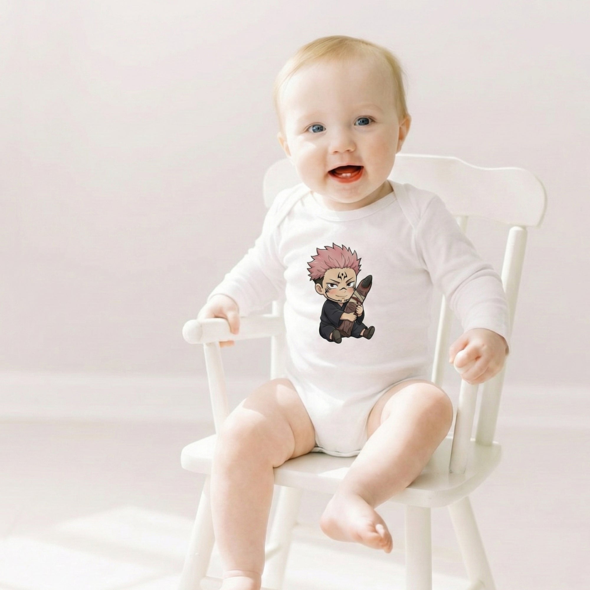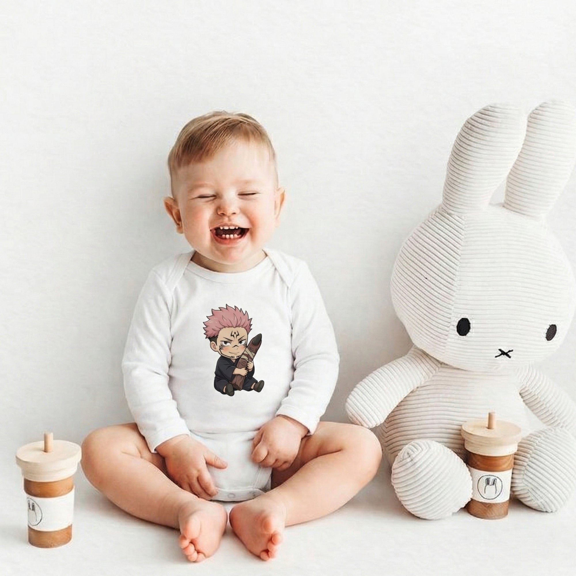 Turn everyday playtime into a darkly adorable adventure with this Sukuna-inspired baby romper — perfect for keeping your little curse comfy, cozy, and ready for mischief (even on cooler days). Whether you’re a Jujutsu Kaisen fan or just love bold, edgy style, this outfit is guaranteed to make your baby the center of attention anywhere.