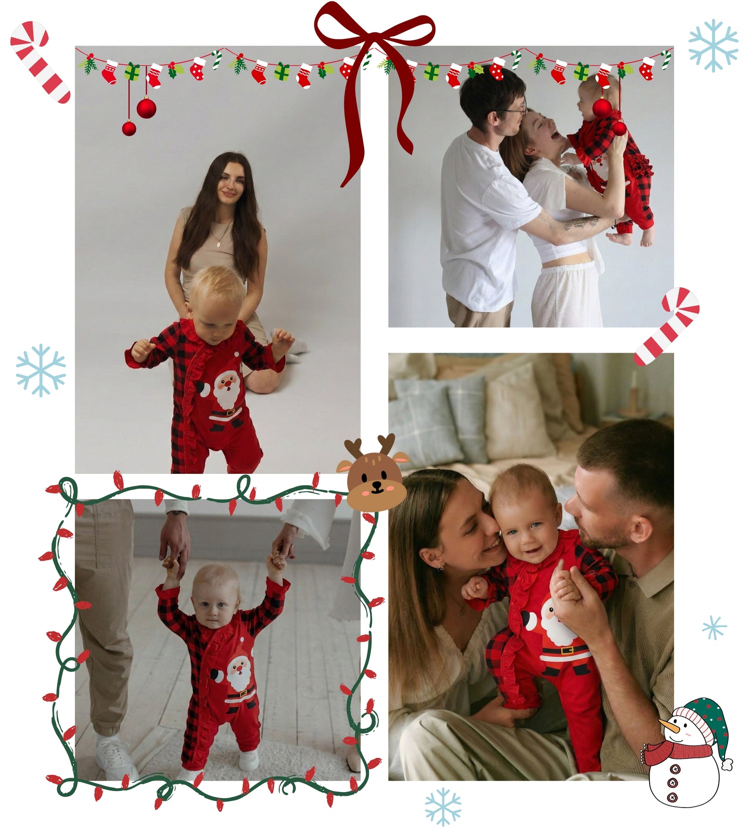 Our cozy Christmas & New Year romper sets turn everyday moments into magical memories — from tiny Santas and playful elves to cute reindeers and festive plaids. Each outfit is soft, warm, and comfy, so your baby can enjoy all the holiday fun while looking absolutely adorable in every photo.